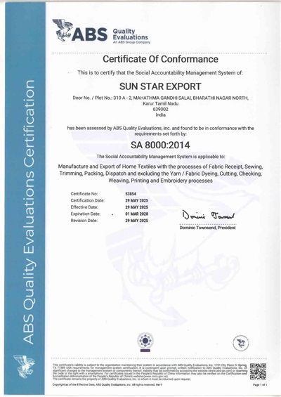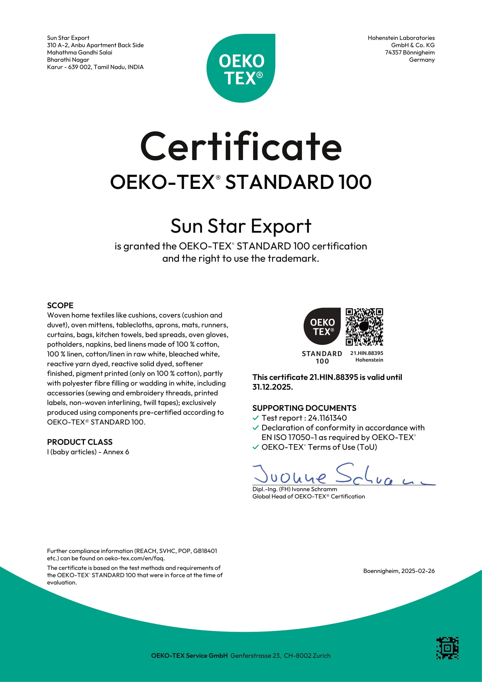 Sun star Export is one of the leading home furnishing textiles exports from the textile city karur. We are doing home furnishing textiles exports for the past 13 years to all over the world' having fully equipped modern facility machines.
